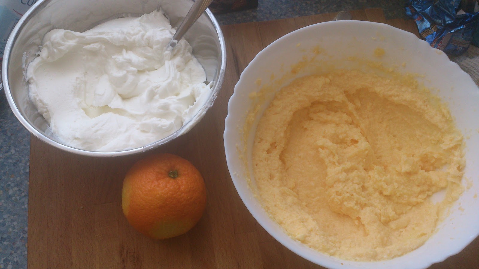 Margarynę dokładnie ucieramy z żółtkami i skórką otartą z jednej pomarańczy.